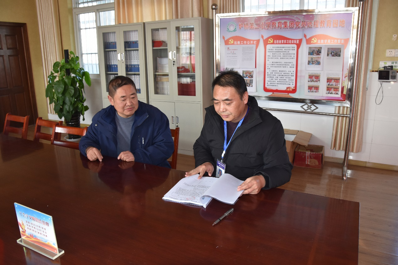 ~ 按照定远县教育督导室12月份督导工作安排,12月23日下午,第三督学责任区督学张中保,来到定远县炉桥镇第二小学教育集团进行专项督导。通过听取汇报、查阅资料、现场巡视、个别访谈等方式,对炉桥镇第二小学教育集团开展“五项管理”和“双减”工作取得的成效及存在的问题和加强学生体质健康管理工作开展情况等进行了专项督导。