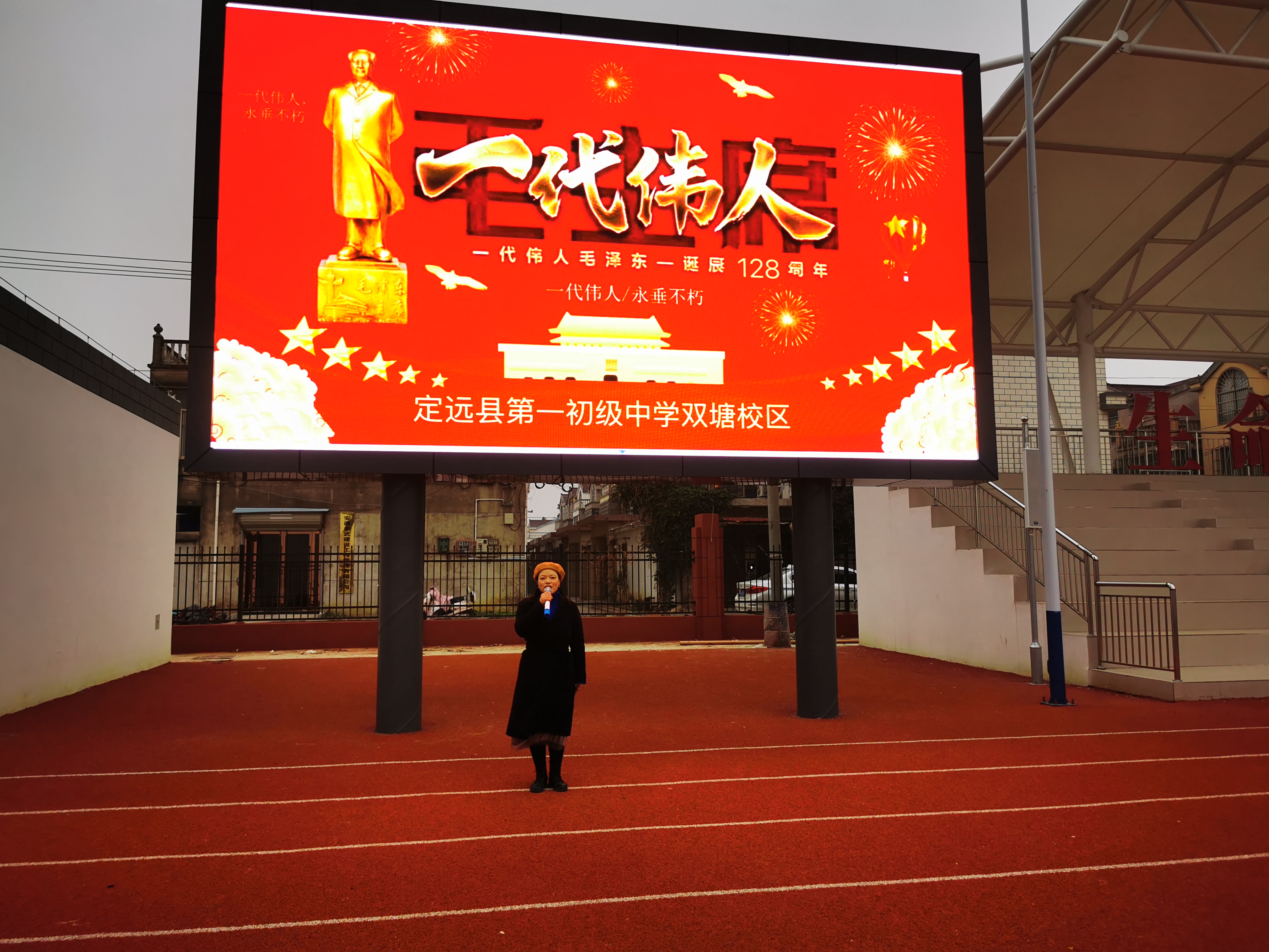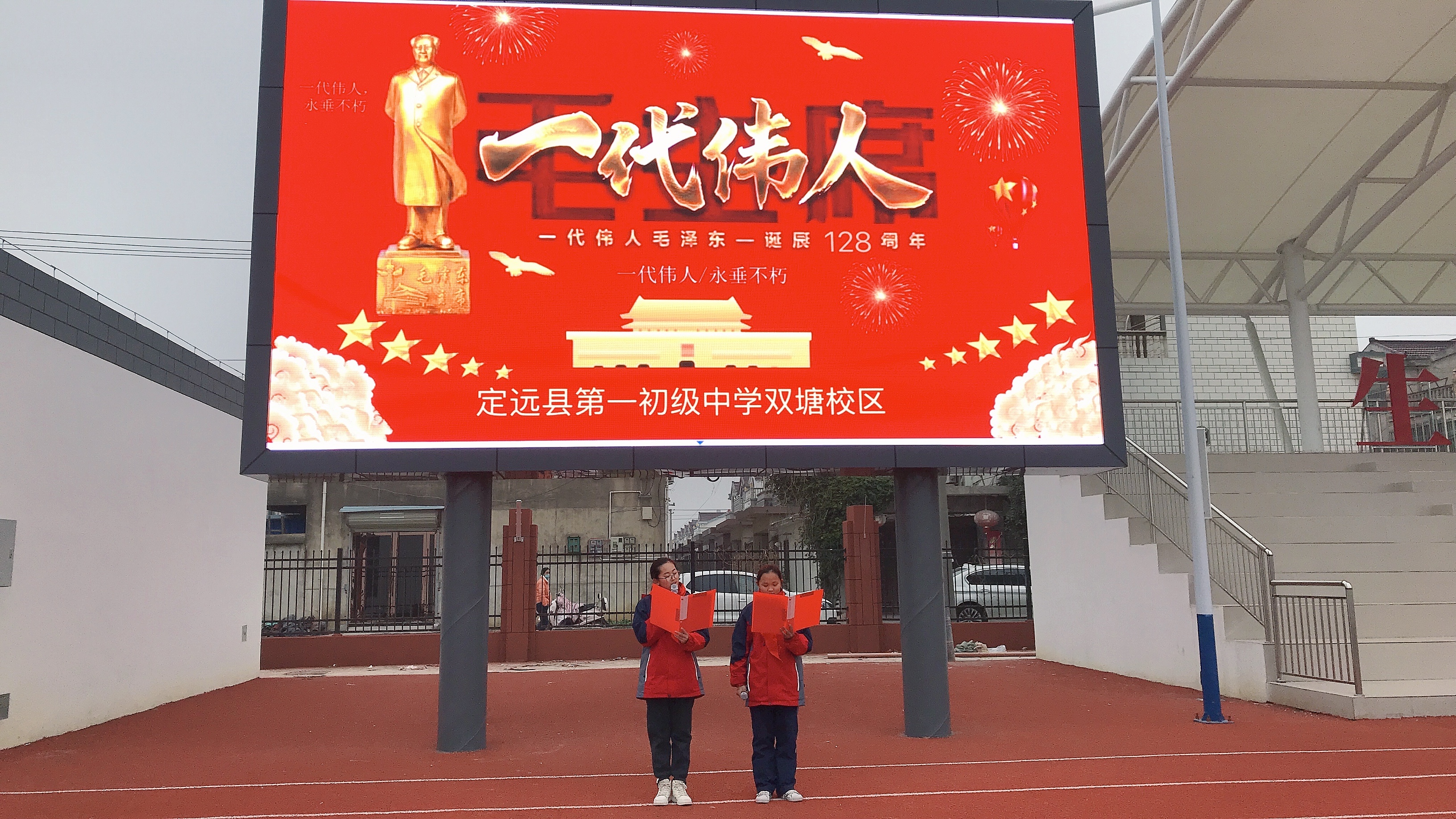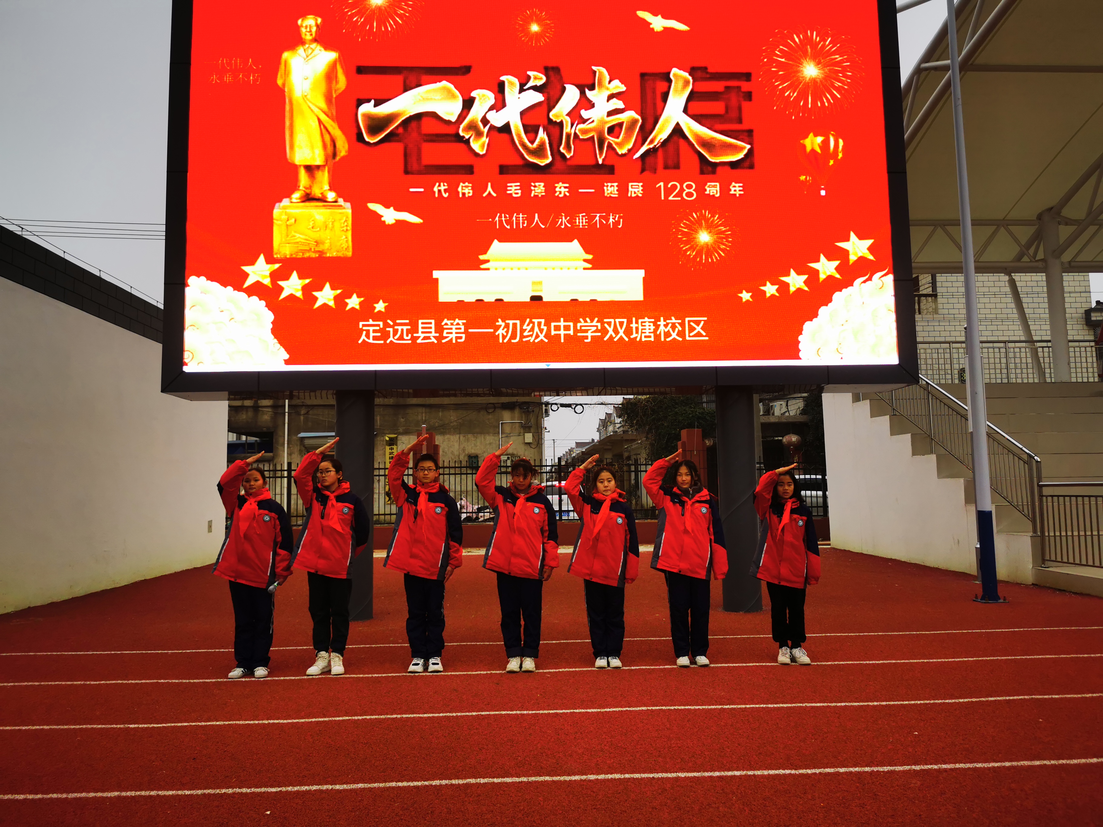 2021年12月26日,是毛主席诞辰128周年纪念日。为深切缅怀伟大领袖毛泽东,弘扬革命精神,12月24日,定远县第一初级中学少工委在双塘中学校区运动场举行了纪念毛主席诞辰读诗会教育活动。同时因近年来外来节日不断对中国传统文化造成冲击,导致很多孩子对外来文化的盲目崇拜,也希望借此活动养苗正根,感受领袖精神,体会家国之情。