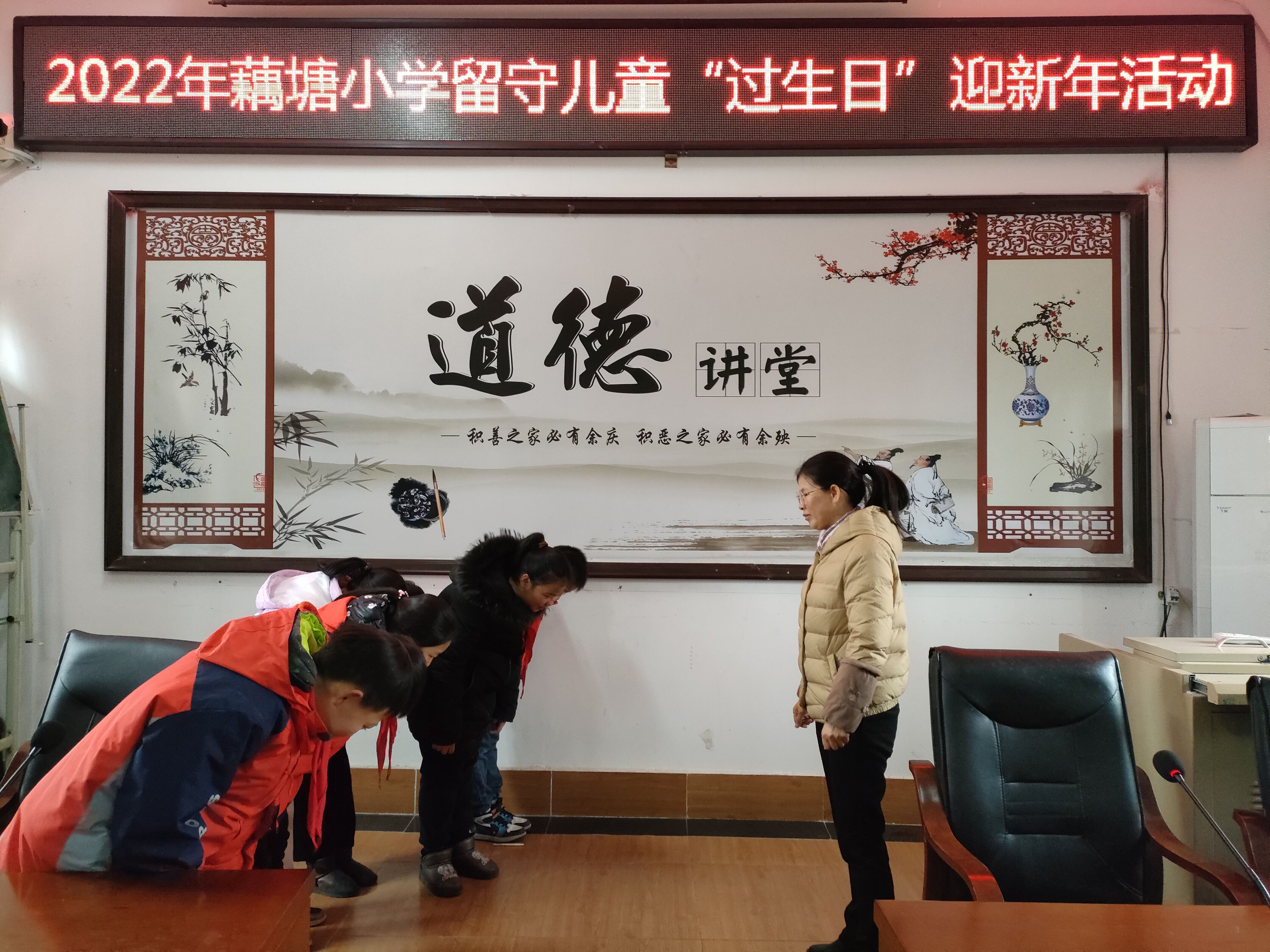 12月24日中午,定远县藕塘小学校多功能教室里歌声朗朗,喜气洋洋,该校全体留守儿童与校分管领导、管理员老师以及各位“爱心妈妈”欢聚一堂,度过了一次愉快而难忘的集体生日会。本次活动由该校留守儿童之家管理员老师主持。