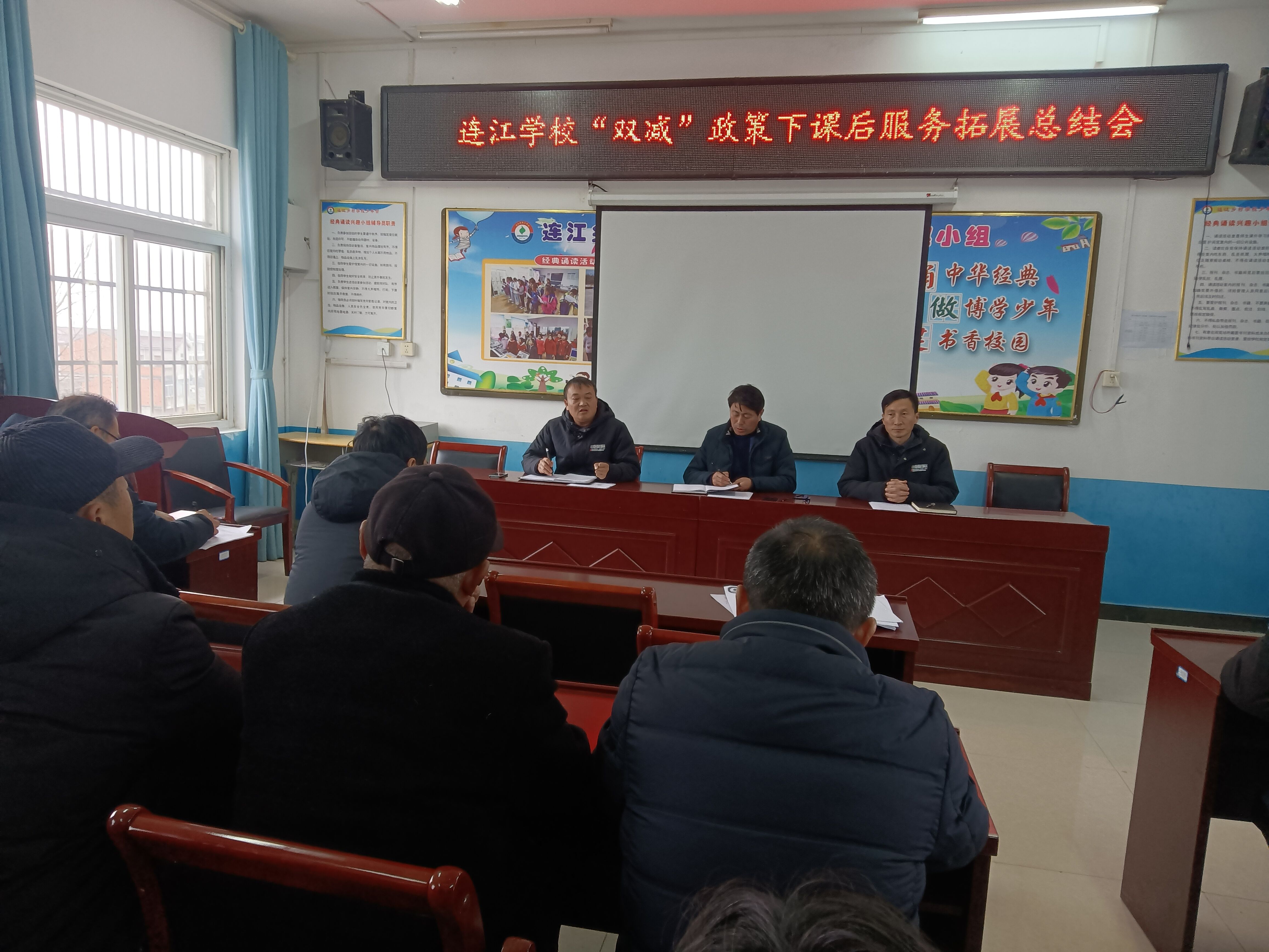 ~ 12月24日,定远县连江学校召开“双减”政策下课后服务拓展总结会,校长黄锦树主持会议,全体教职工参加了会议。