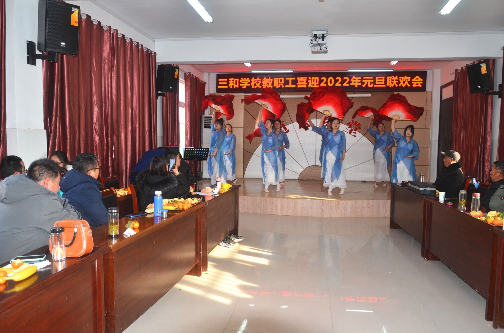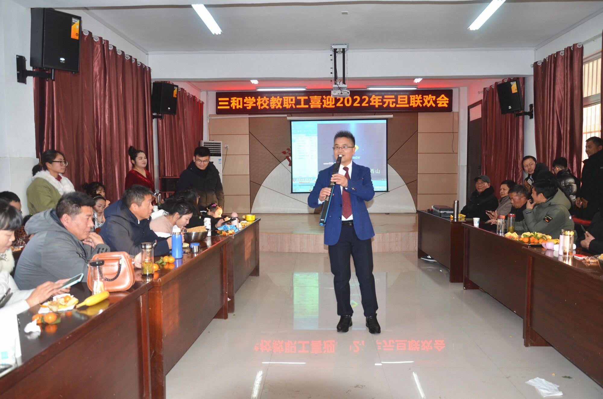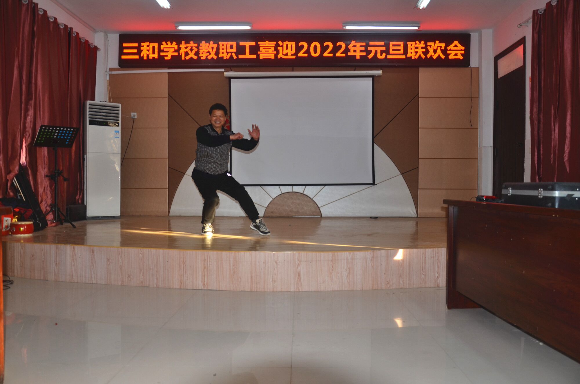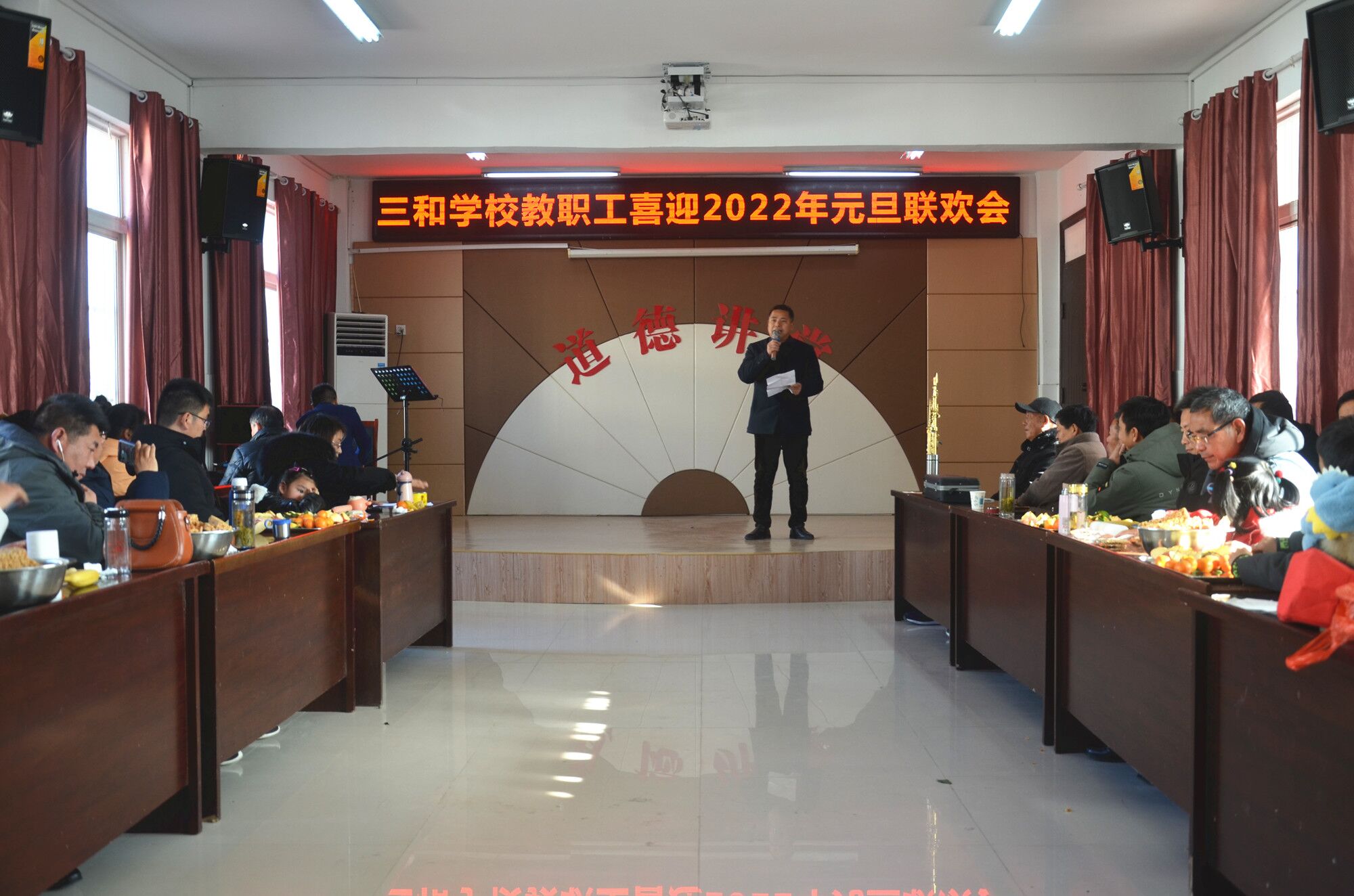 2022年元旦即将到来,为丰富校园文化生活,创建幸福和谐校园,助力教职工在新的一年里继续奔跑追梦,12月26日,定远县三和学校在少年宫道德讲堂举行教职工喜迎2022年元旦联欢会,活动由该校工会主办,全体教职工及部分家属子女共80余人参加联欢活动。