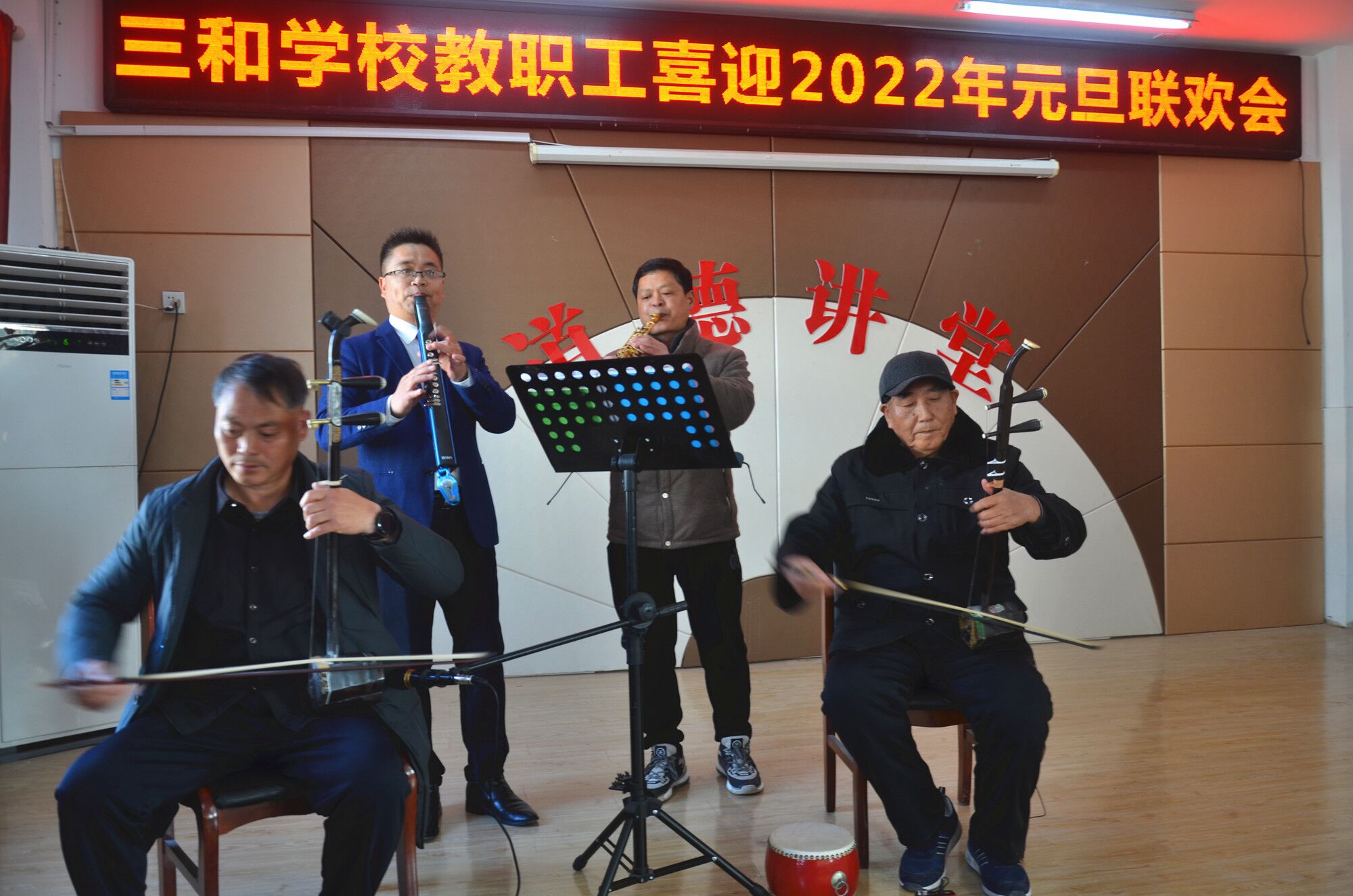 26日下午,三和学校教职工喜迎2022年元旦联欢会如期举行。该校党支部书记、校长蒋安奎在致辞时简要总结了一学期以来学校各项工作取得的可喜成绩,代表学校向全体教职工的不懈努力与辛勤付出表示感谢,鼓励全体同志再接再厉,再创辉煌。随后,乐器合奏、舞蹈、歌曲、瑜伽、武术、二胡、电吹管等节目纷纷登台表演,现场乐声悠扬、舞影绰绰、歌声嘹亮、掌声雷动。联欢会进程中还穿插着蒋安奎等校领导慰问教职工的阵阵“红包雨”,整个联欢会弥漫着欢快祥和幸福的气氛。(图文 盛少堂;审核 蒋安奎)