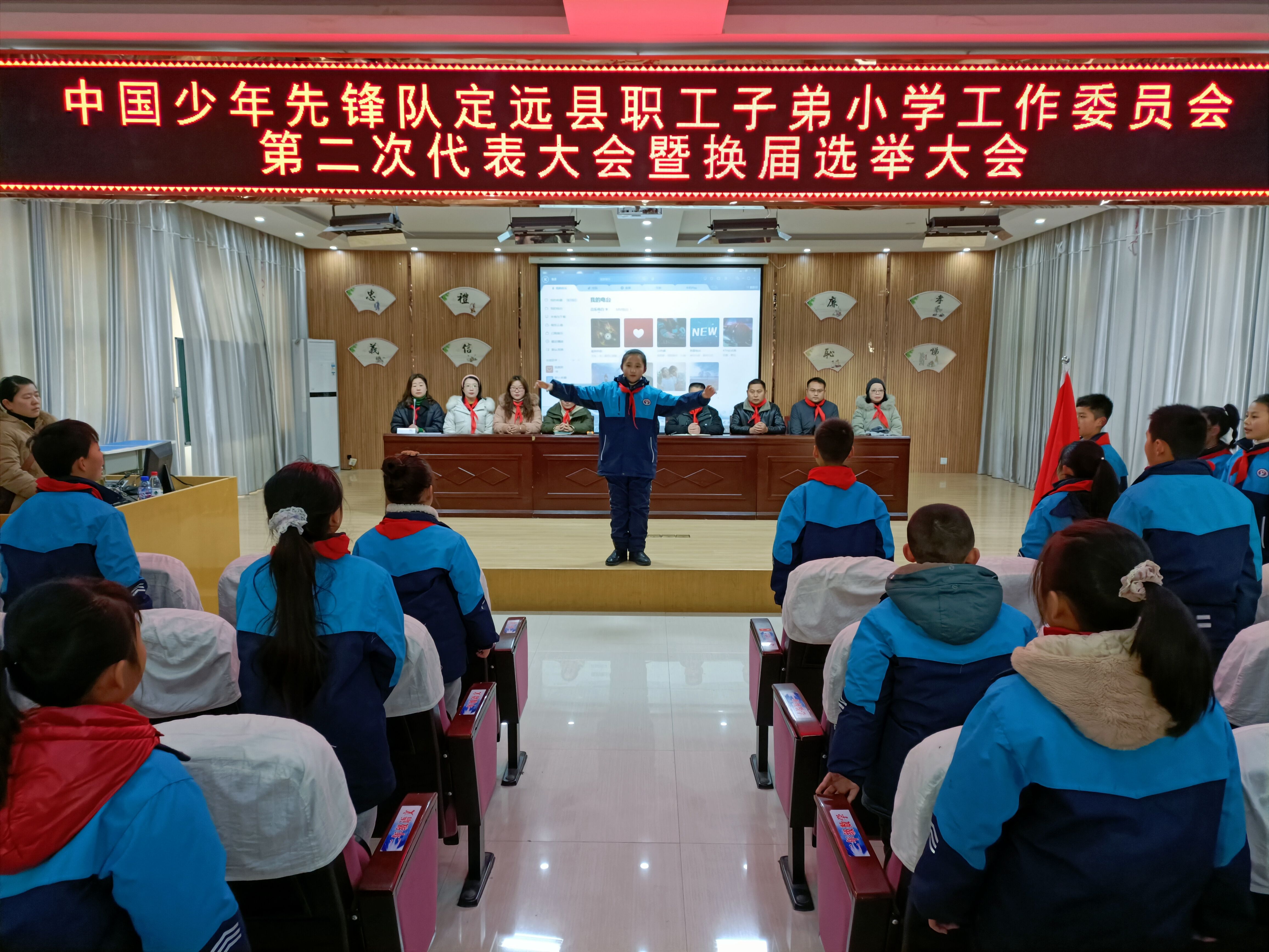 为加强学校少先队工作,推进学校少先队标准化、制度化建设。根据全国少工委《中国少年先锋队组织工作条例》文件精神和要求,12月27日上午,定远县职工子弟小学召开了第二次代表大会暨换届选举会议。会议由学校大队辅导员王琴主持。