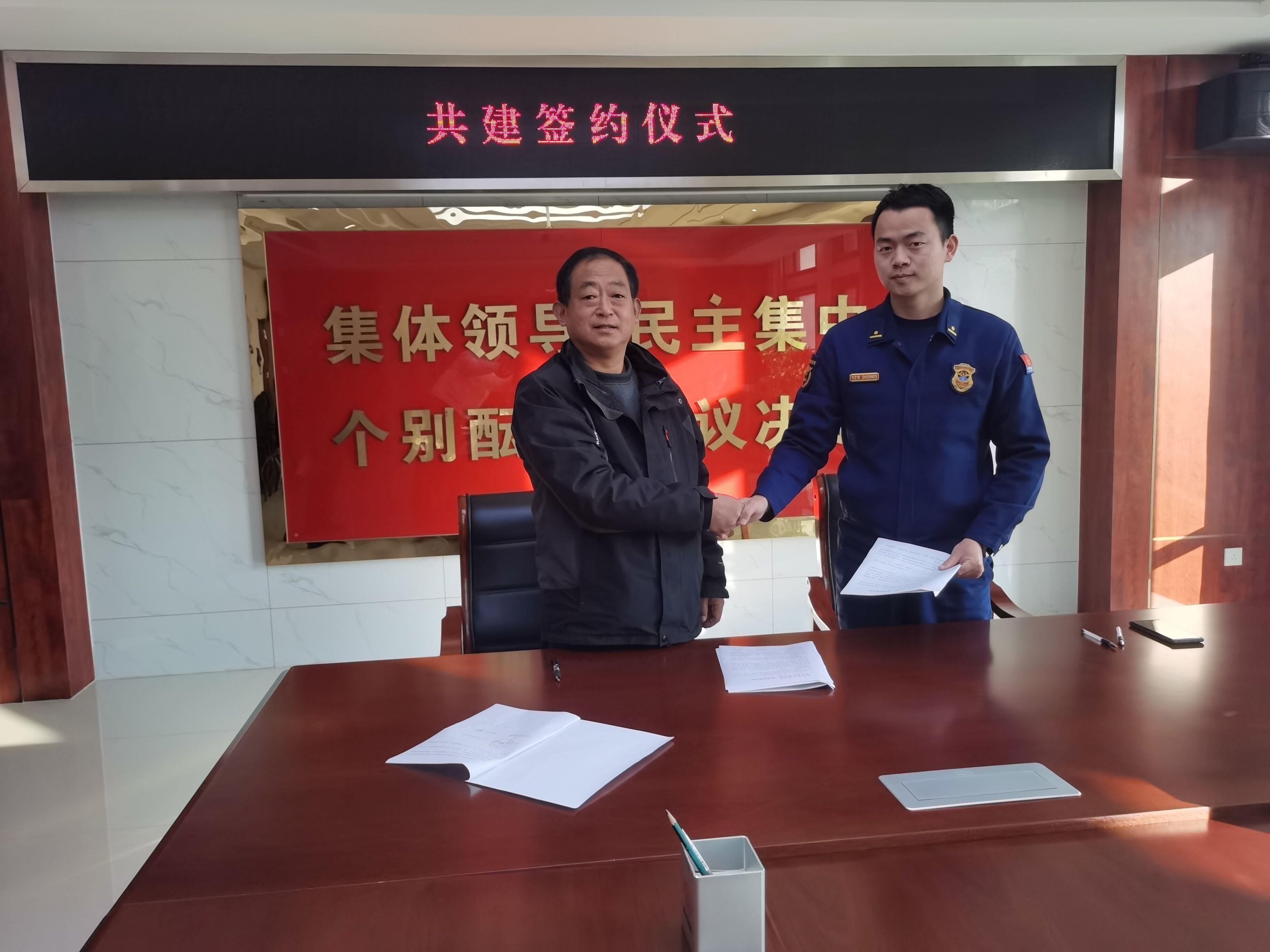该校党支部书记姜峰代表早庙学校对消防大队全体官兵表达了尊敬和赞誉,同时送上了慰问品。双方签订了军民共建协议并进行了深入交流。双方就共建的情境、互动的方式、共赢的质效等达成共识。姜峰感谢消防大队对学校工作的大力支持,并表示将继续延续这份共建情谊,将拥军优属作为一项长效机制来抓,把共建活动做实、做细。(供稿:范睿 审核:张辉)