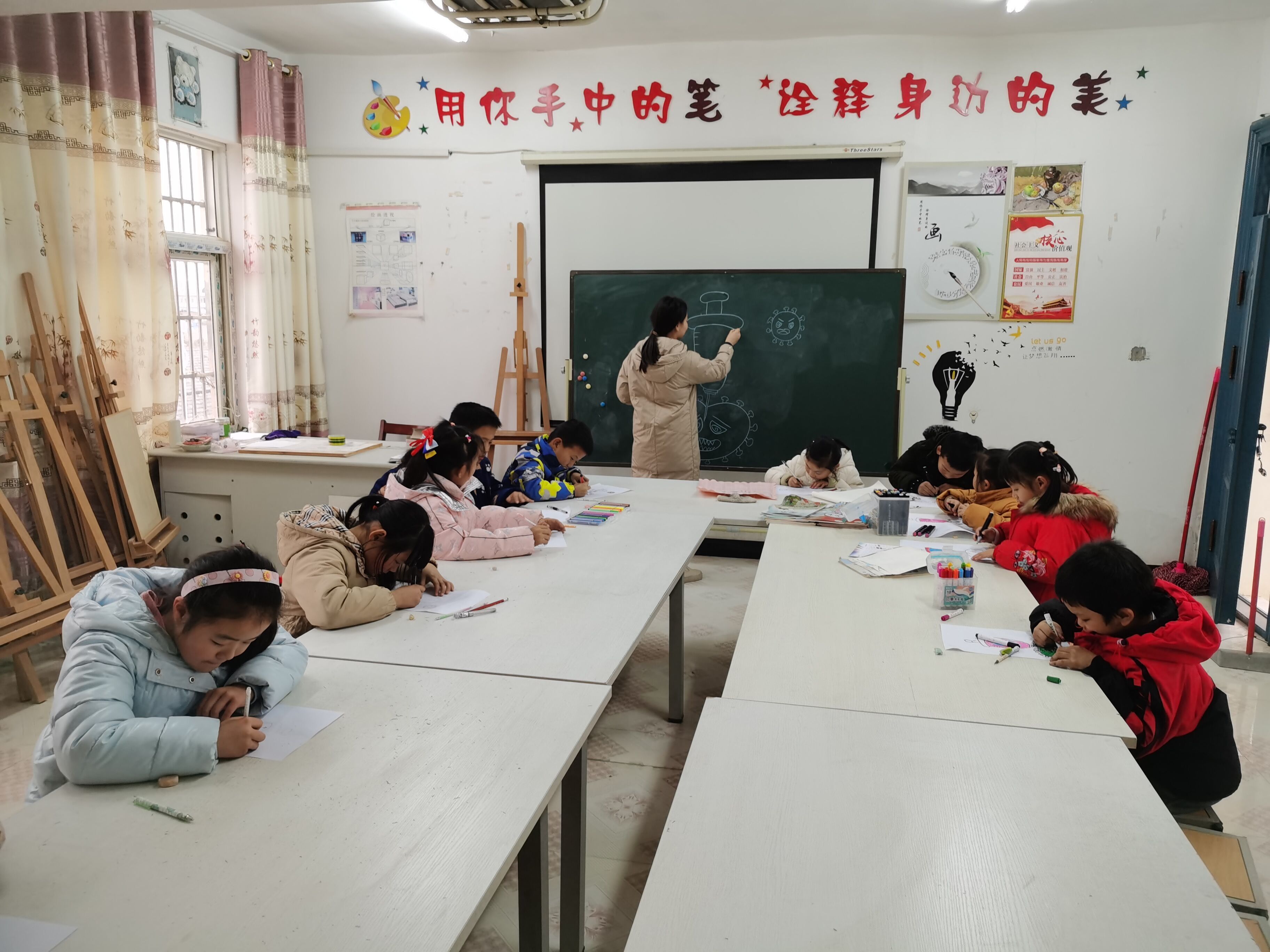 ~ 舞蹈兴趣课,让孩子们的脸上绽放出了花儿般的笑容。“哪里有音乐,哪里就乐融融。”音乐兴趣小组的孩子们正兴致勃勃的欣赏优美的乐曲呢!美术兴趣课的开展,不仅带给孩子们画画和欣赏绘画的能力,更加教会了他们坚持、坚强的精神力量和财富。”腹有诗书气自华。“阅读课的开展,引导孩子们在老师的指导下,逐渐形成自读能力,培养热爱阅读的好习惯。篮球是对抗性集体竞赛项目,不仅有激烈的竞争,有团队协作。篮球兴趣小组的开展,培养了学生的竞争意识和团队协作意识。”宝剑锋从磨砺出,梅花香自苦寒来。“乒乓球兴趣小组的开展,不仅磨练了学生的意志,还培养了学生吃苦耐劳的精神。