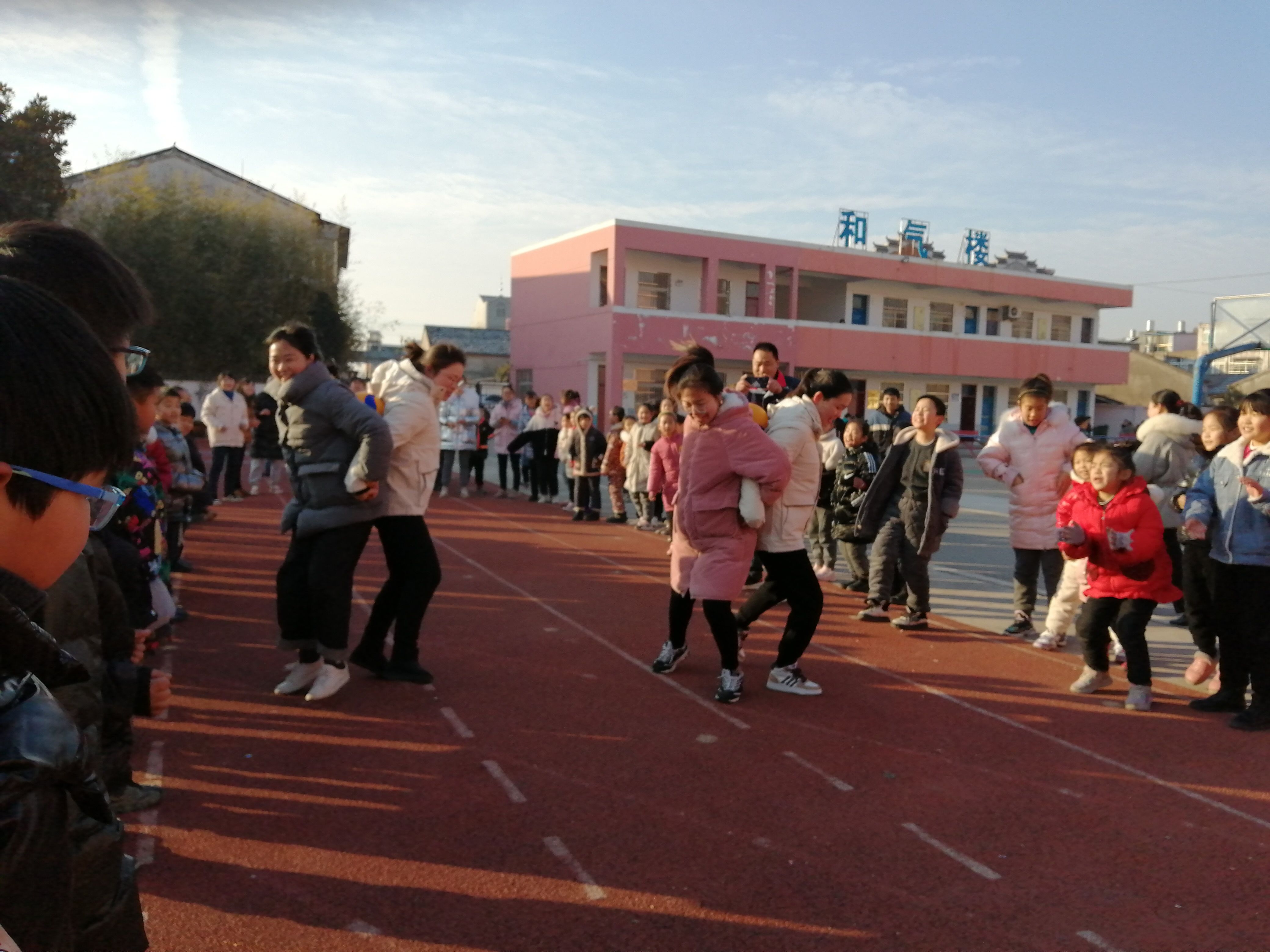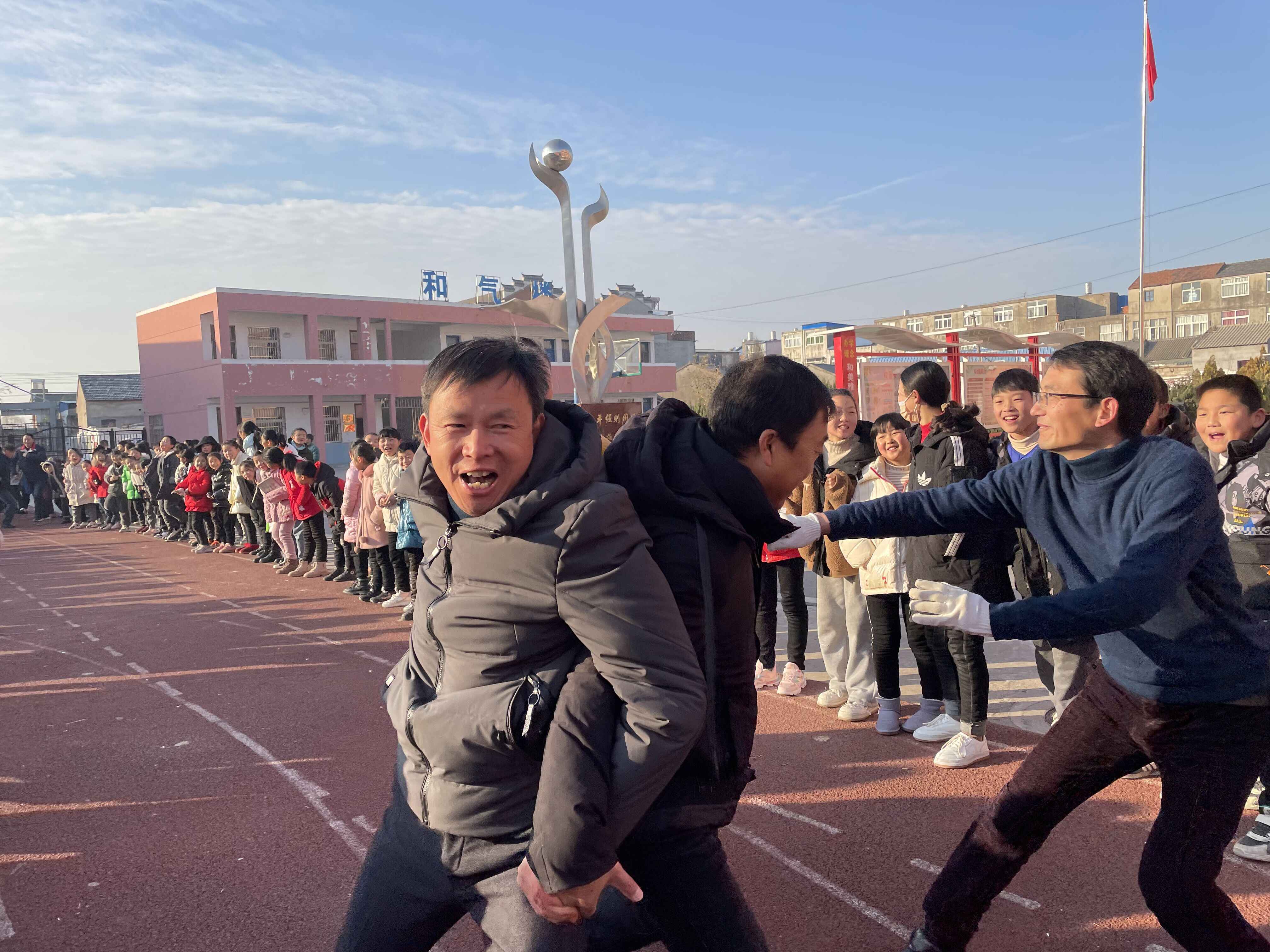 ~ 12月30日上午 8:30,老师们准时聚集在操场上为活动做准备,只见裁判一声令下,选手们背靠背夹球向终点冲去,加油声口令声不绝于耳,一时将现场气氛推向高潮。一个个腾空跳跃的身影,赛出了激情,赛出了水平,充分体现了教职工健康向上的精神风貌,朝气与活力在每一个教职工身上体现。