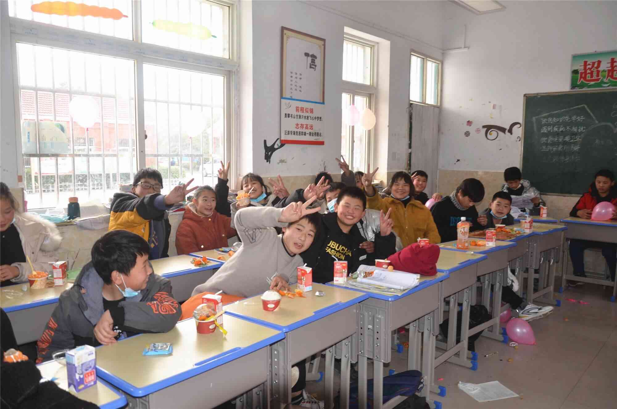 12月31日,定远县三和学校六至九年级寄宿生以班级为单位举行庆祝元旦联欢会,以迎接2022新春的到来。