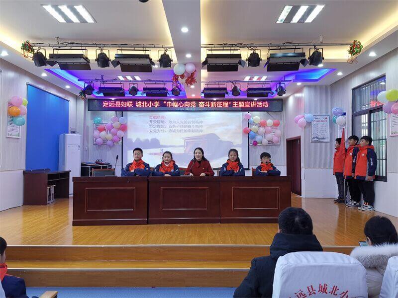 为加强党史学习教育,1月4日,定远巾帼宣讲团走进城北小学开展主题宣讲活动。定远县妇联党组成员、副主席龙珑、妇联组宣部部长朱立新、城北小学党支部书记、校长吕兴会出席。