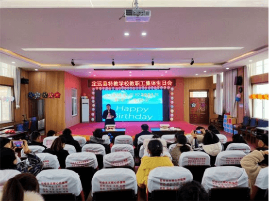 第二项是教职工集体生日。活动开始工会主席张文宣读2021年下半年寿星名单,校长谢庆贵送上温馨的祝福,感谢教职工为学校工作和发展做出的贡献。该校为教职工们过集体生日,充分体现了学校的人文关怀,使全体教职工感受到特教大家庭的温暖和幸福,增强教职工的凝聚力和向心力,激发教职工的工作热情,携手同心,砥砺奋进。