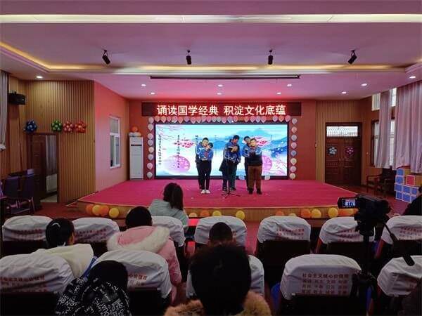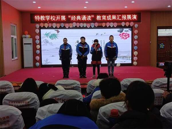 2022年1月5日,定远特教学校在二楼多功能厅组织培智部学生开展“经典诵读”教育教学成果汇报展演,本次活动以“诵读国学经典 积淀文化底蕴”为主题。全体启智部师生参加,校长谢庆贵亲临活动现场。