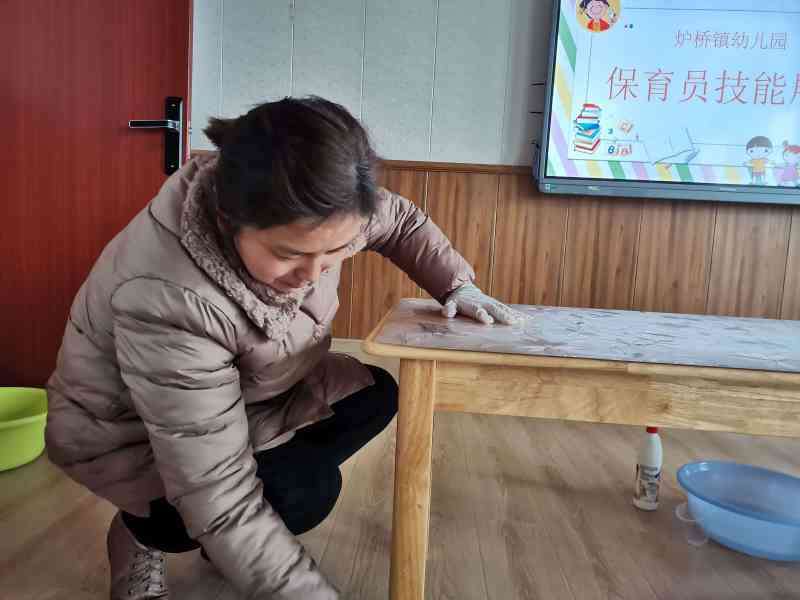 本次比赛采用理论与实践相结合的形式。保育老师们按抽签分批次进行叠被子比赛,每人套叠盖被、垫被、枕头,并整理床铺,叠好被褥。被子要求叠的有棱有角,床铺整理平整。随后严格按照清消清的形式,擦拭桌子,不放过一个死角。精彩的问答,再现她们日常工作的点滴积累,保育教师们结合平时工作的经验和扎实的理论功底,认真作答,充分展现了炉桥镇幼儿园保育团队良好的专业素养。