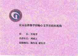 ~ 畅心文学社组织机构完善,由该校九年级语文教师许纯芳任社长,校长周成立任名誉社长,语文教师熊传龙、谢发青任高级顾问。