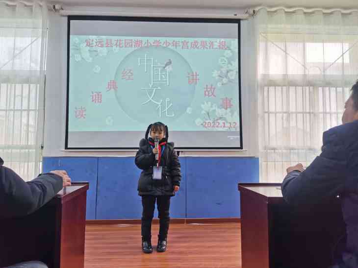 为进一步丰富校园文化生活,营造浓厚的书香校园氛围,借以传承国学文化经典,2022年1月12日下午,定远县花园湖小学举行少年宫成果汇报展——经典诵读讲故事比赛。
