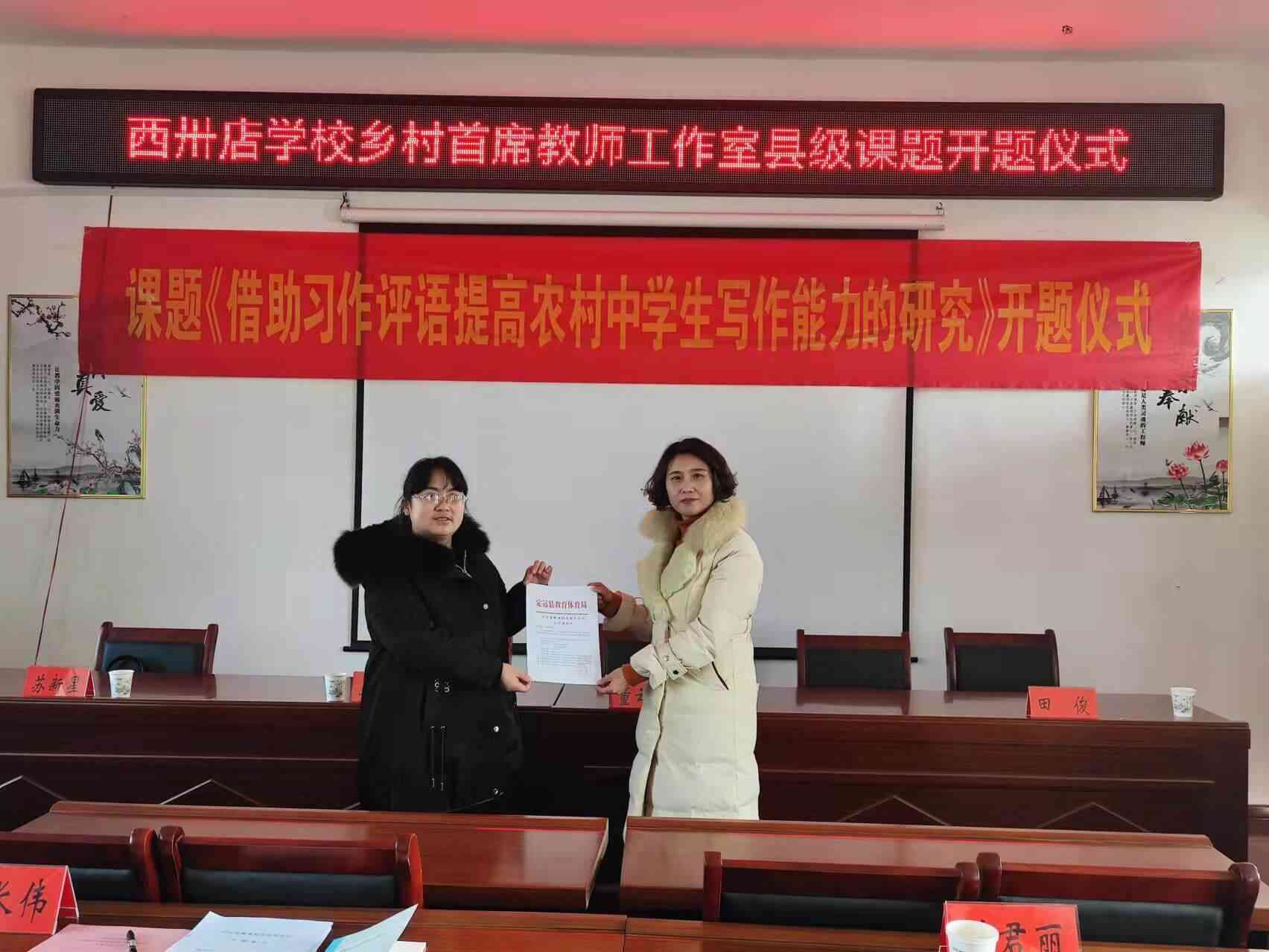 ~ 1月12日,定远县西卅店学校举行县级课题《借助习作评语提高农村中学生写作能力的研究》开题仪式,县教体局教研室董云艳、李秀娟,校长苏新星及课题组全体成员参加了本次开题仪式。