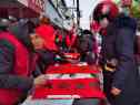 这天的天气较往常格外地寒冷,但文化馆门前却人头攒动热闹非凡,前来要写春联的人滔滔似水络绎不绝。94高龄书法届泰斗,定远老年大学书法班老师舒峰老先生也顶着刺骨的寒风在现场给广大市民书写新联。只见老先生挥毫泼墨专心致致地书写出一幅幅充满喜庆吉祥的春联被广大市民等候恭求。