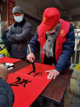 定远老年大学书法班的学员们都是文明实践活动的志愿者,虽然天气寒冷,可是这些耄耋老人们却用暖暖的爱心和热情,在红红的纸上写下一句句美好的祝福和对新春的殷切期盼。一幅幅洋溢着墨香的大红春联带着浓浓的年味扑面而来。一位拿到春联的八旬老太激动地说“现在共产党领导的好啊!我们生活的这么幸福不说,还控制了这么大的疫情,我们都很感谢党,会听党的话,在家安心的过个好年。 ”