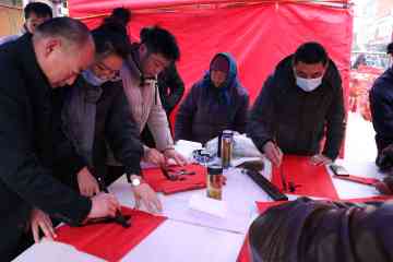 ~ 老百姓手捧着红红火火的“福”字,读着寓意吉祥的春联,个个笑逐颜开,赞不绝口,现场洋溢着欢乐喜庆的氛围。红红的对联,浓浓的墨香,不仅承载着人们美好的希望和祝福,更代表着源远流长的节日传统文化,给群众送去美好祝福的同时,也让人们感受到对联的对仗工整,文字的简洁、精巧和规范。(供稿:王爱侠 审核:张中保)