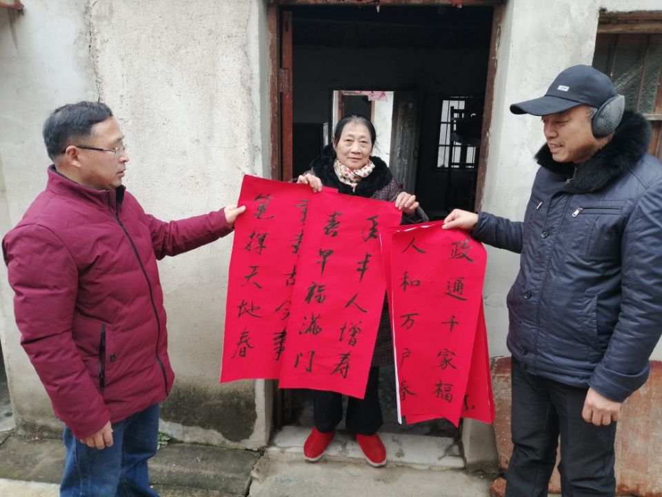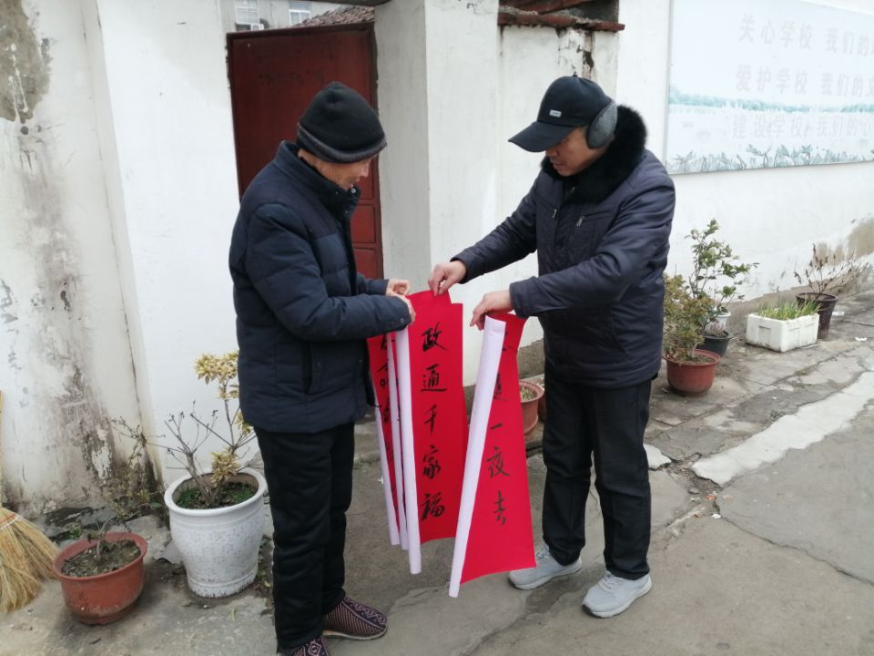 活动现场,桑涧初中两位书法爱好者张国永主任、朱广玉主任挥毫泼墨,把美好新春祝愿倾注到红红的春联中。写完后,把春联送到街道社区,送给群众,向群众送上新春美好祝愿。(图文:袁之明  审核:单正元  终审:金世权)