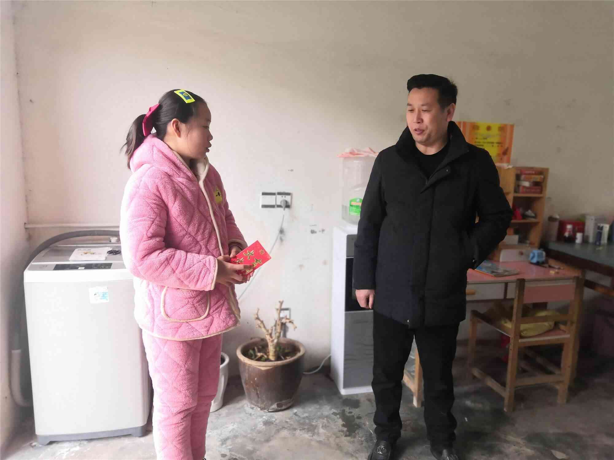 朱永正先生在母校老师李思平等陪同下,冒雪驱车走村入户,依次走进姚晨、何长安、魏俊晖等六名学生家中,给每位学生发了一个压岁红包,鼓励他们好好学习,增强信心,战胜困难,追求上进;并承诺将作为学生求学深造的坚强后盾,竭力解决他们今后就读高中、大学过程中遇到的经济问题。学生及家长纷纷对朱永正先生的款款爱心表示由衷感谢!