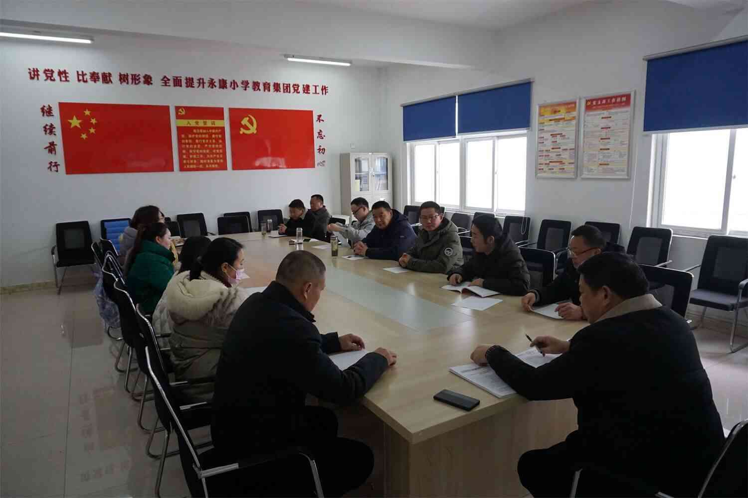 2月13日,定远县永康小学教育集团在党员活动室召开春季开学工作会议,研究部署新学期开学工作,会议由校党支部书记、校长王希金主持,全体行政人员参加会议。