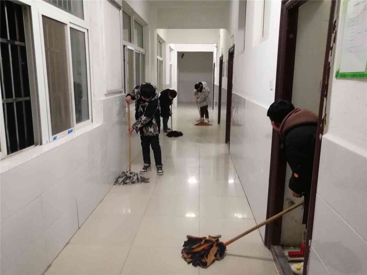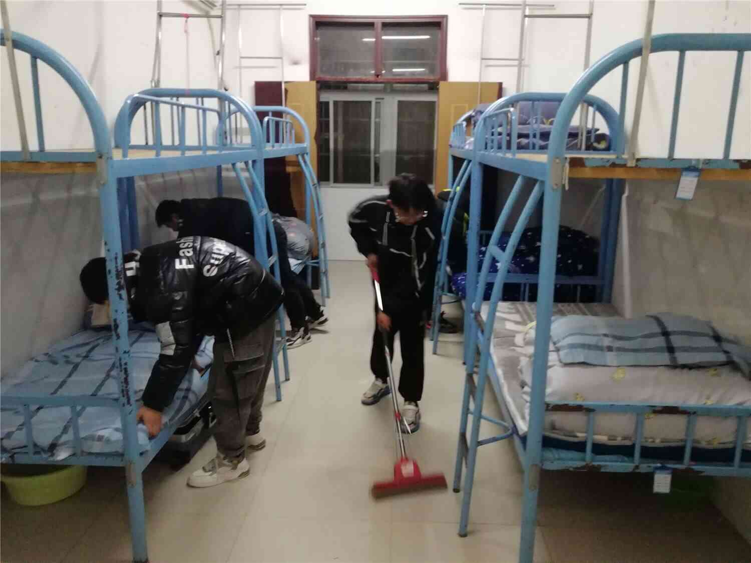 为了确保同学们有个整洁、优美的生活环境,养成良好的自立生活习惯,规范寄宿制管理制度,加强学生宿舍内务整理及卫生环境建设。2022年2月21日,定远县永康小学教育集团部分少先队员在辅导员的带领下,分工明确、密切配合,对学生公寓环境卫生进行了全方位的清理打扫。