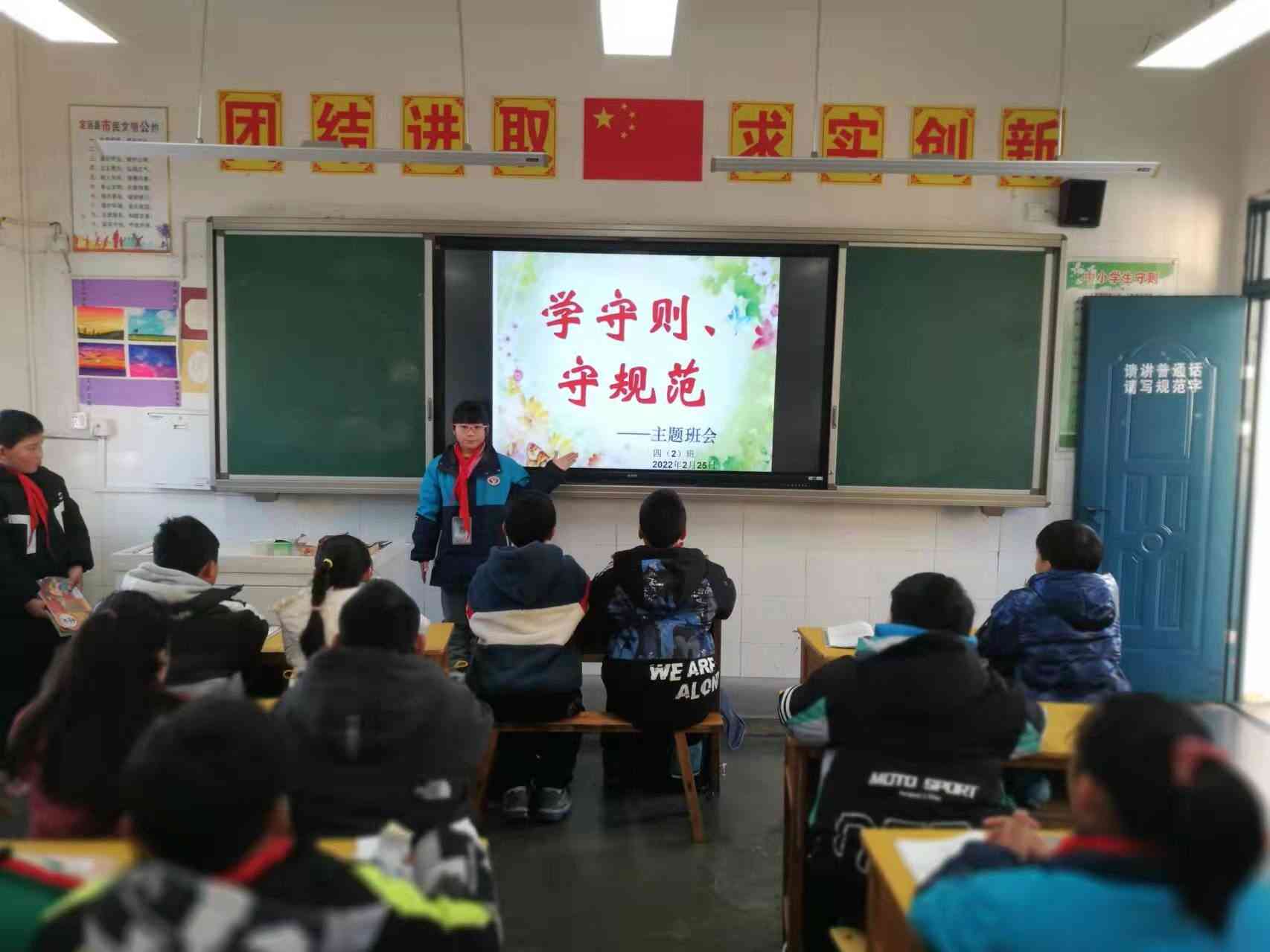 为进一步加强学生日常行为规范的养成教育,培养学生良好的文明行为习惯,2月25日上午,定远县职工子弟小学开展了学《守则》、守《规范》做文明少年主题教育班队会活动。