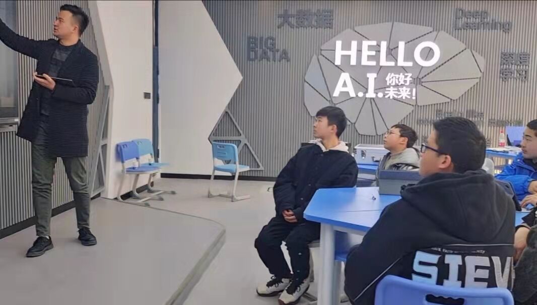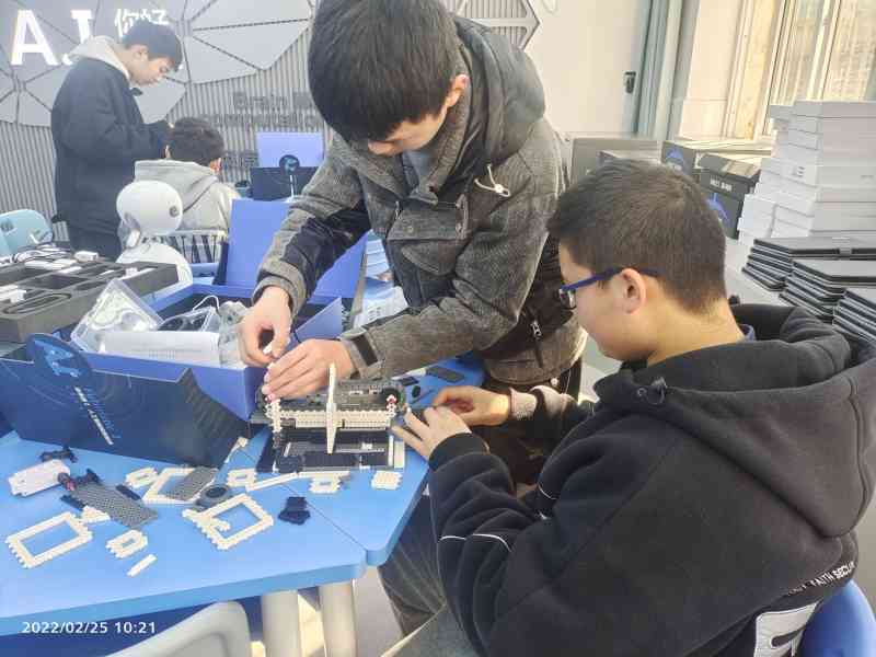 ~ 2月24日,定远县第二初级中学人工智能科学创新实验室里,由该校社团成员蒋雨、王鑫锐、何文庆等六位同学组成的AI创客小组,正在设计搭建第二十届安徽省学生信息素养提升实践活动的参赛作品——“未来智能物流分拣机”。