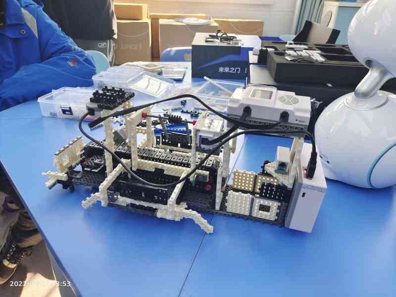 ~ 创客小组的成员们在科大讯飞AI创新教育老师和该校社团老师的指导下,借助科大讯飞中小学AI创新教育教学应用平台、人工智能教具未来派I号和平板电脑等编程工具,通过团队合作,在讨论与反复实践中,最终实现了智能物流分拣功能,即机器人可将包裹通过摄像头拍照自动将快递包裹分拣输送到各个快递仓,加快物流分拣,提高物流工作效率。