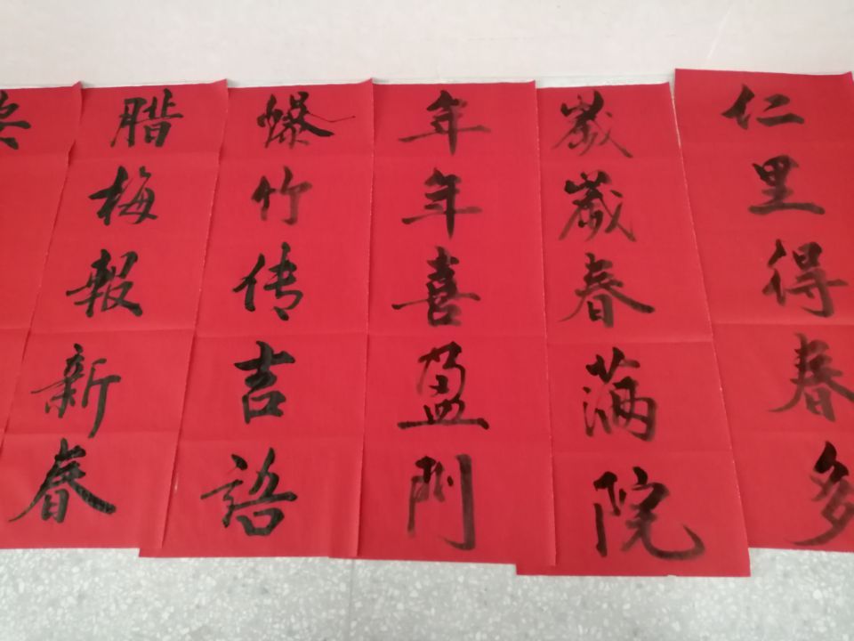 为了提高书写效率,学校将党建室设为工作间,同时为了让家长能及时领取到春联,要求书写春联的三位老师一大早就赶到学校。裁剪条幅,折叠字格,三位老师有条不紊地做好准备工作后,挥毫泼墨,短短两个小时就完成八十张红纸的书写,共书写对联一百八十余幅。 学校安排工作人员及时将对联分发到学生家长手里。拿到对联的家长满脸笑容,一个劲儿的感谢学校赠送的新年礼物。该校校长杨乃军代表学校也表示了对各位家长对学校的一贯支持的感谢。 上午十点半,赠送春联活动圆满结束。随后,校领导走进退休老教师家里,向他们赠送了春联,并带去了新年的祝福。(张道云)