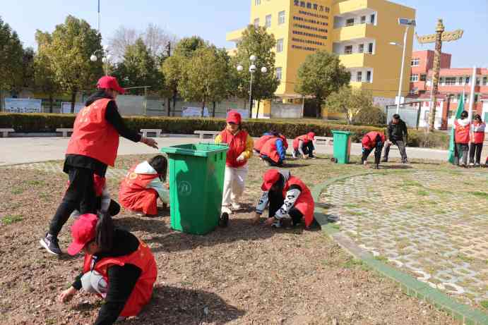 ~ 在校园青春广场上,团旗、志愿服务旗高高飘扬。在花坛内空地上,同学们干的热火朝天,他们不怕脏,不怕累,仔细地把散落在泥土里的建筑遗留废石子、废弃物、食品袋等垃圾清理干净。虽然今天天气较热,但每位参与活动的同学表现都很积极,经过半个小时努力,花坛内各种建筑遗留石子荡然无存,同学们为美化校园贡献一份力量的行为,得到了路过师生们的一致好评。