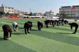 “踢腿,弯腰,侧身……”为丰富教师业余文化生活、切实提高教师的健康水平,定远县范岗学校在新学期打响了教师“身体保卫战”,教师体育课于3月4日正式开课。 该校校长陈恩源表示…