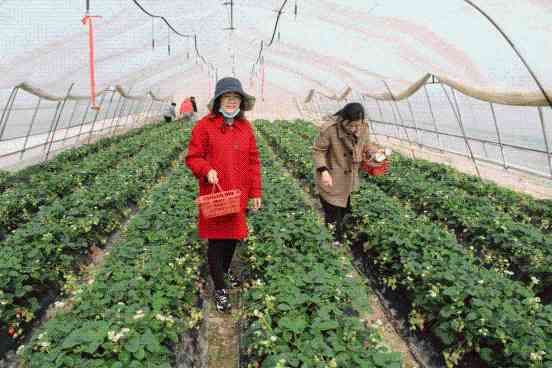 大家在田野里尽情感受着初春的清新,心情格外舒畅。塑料大棚里,绿叶衬红果,芬香扑鼻来。大家一边品尝一边采摘草莓,欢声笑语不断,快乐热情四溢,不仅体验了田园劳作乐趣,也收获了沉甸甸的“战利品”。