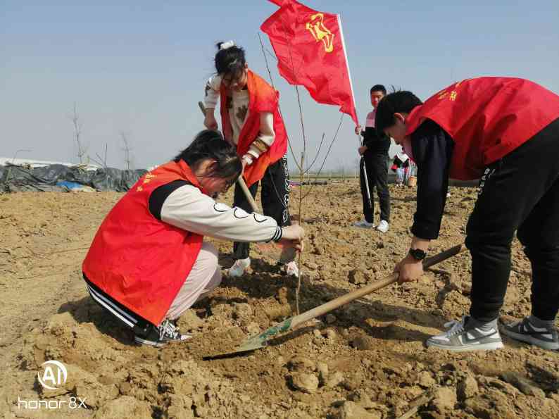 ~ 在社区活动现场,参加活动的师生们分工协作,有的挥锹铲土,有的挖坑栽树,有的培土浇水,每一环节都精心对待,做到对每一棵树认真负责。他们不惜力,不怕累,活动现场呈现一派热火朝天的劳动景象。经过近两个小时的紧张劳动,活动结束,师生们共植树一百二十余株。