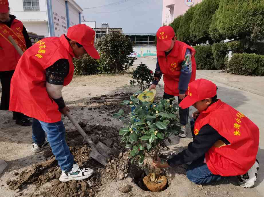 在植树节即将到来之际,让学生感受到春暖花开的喜悦,3月10日,定远县朱湾小学少先大队组织部分少先队员在校园的花圃义务植树。