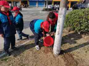 在大队部的组织下,优秀少先队员们走出校园,来到南环路社区开展爱绿护绿活动。首先,社区志愿者向同学们讲解了公园内树木的种类、名称和养护知识等。接着,同学们每人认养一颗小树,一起给小树浇水、施肥,与小树共同成长。