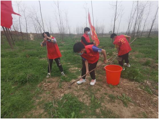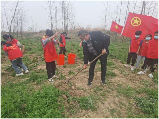 3月16日下午,定远县红山学校部分党员志愿者和少先队员志愿者,在学校党支部书记、校长王飞的带领下,开展了“爱绿护绿在行动”植树活动。