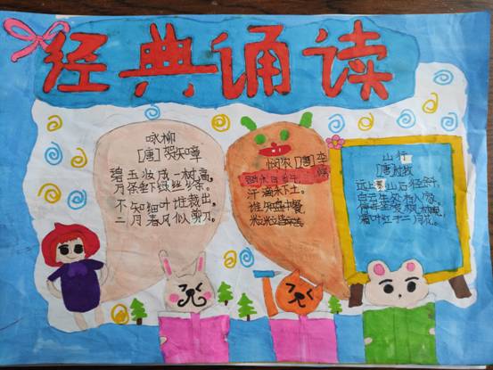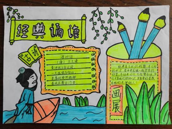 ~ 通过此次“经典诵读诗画展”手抄报比赛活动,营造了浓厚的书香校园氛围,大大提高了学生对经典古诗美文的学习兴趣,提高了学生的欣赏水平以及审美情趣,让学生不忘经典,争相传诵,争做博学美德少年。(图文:张勇勇审核:高付兵)