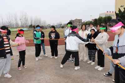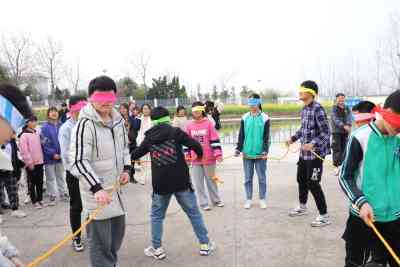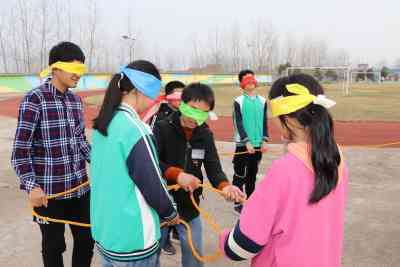 定远县天河初中团委为了放松同学们一周的学习疲劳,组织了“盲人方阵”拓展训练。该活动需要团队中每一个队员的配合才能完成。游戏要求每个团队所有成员都蒙上眼睛,在规定时间内,利用发给大家的绳子,组成一个面积最大化的正方形。所有队友必须相对均匀的分布在正方形的四条边上。时间为5分钟,由盲人队长现场指挥,任务完成用时最短即为成功。