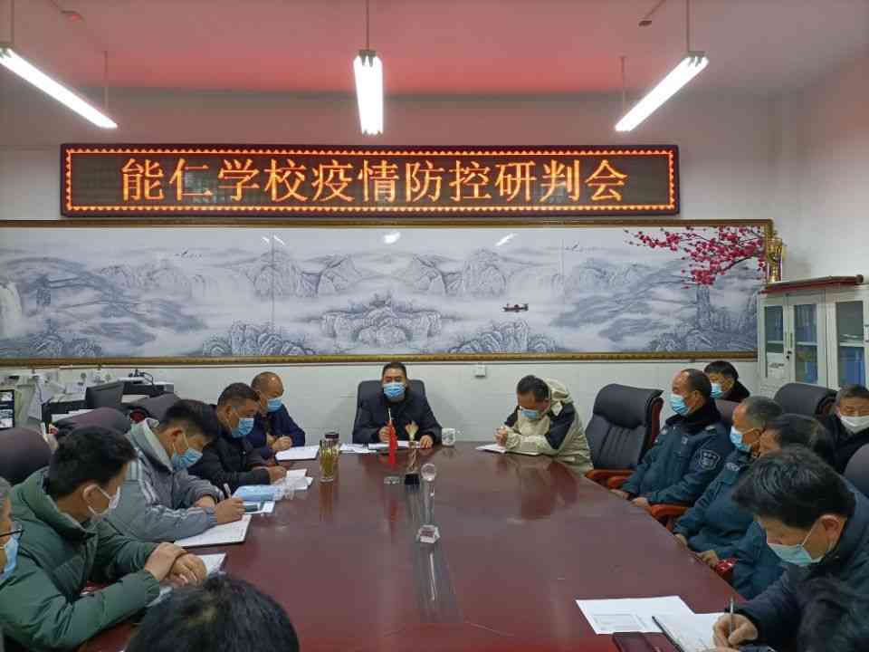 ~ 3月20日,定远县能仁学校在会议室召开疫情防控工作研判会。校长室成员、安全办成员、教学点负责人及8名安保人员参加会议。