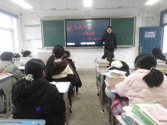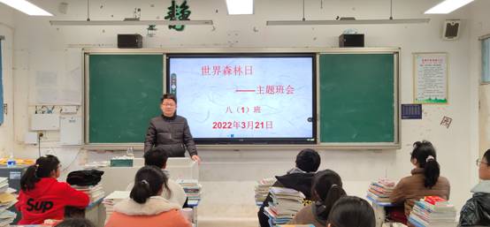 ~ 班会上,各班主任向学生们介绍了“世界森林日”的由来、森林的功能,森林与气候的关系以及如何保护森林资源等方面的知识,让同学们了解了中国森林资源的现状,使他们更加珍惜弥足珍贵的森林资源,爱护森林爱护树木。最后,班主任向全体同学发出倡议,要求从自己做起,爱护一草一木,保护绿色植物,积极参加植树造林活动。