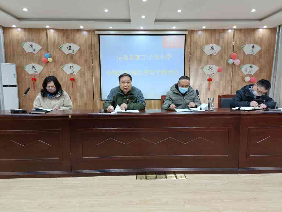 3月23日上午,定远县职工子弟小学在南四楼会议室召开了疫情防控强化管理工作专题会议,会议由学校党支部书记、校长杨孝前主持,全体教师参加了会议。