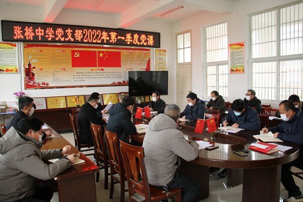 ~ 2022年3月23日,定远县张桥中学支部书记方华龙上党课强化疫情防控工作。