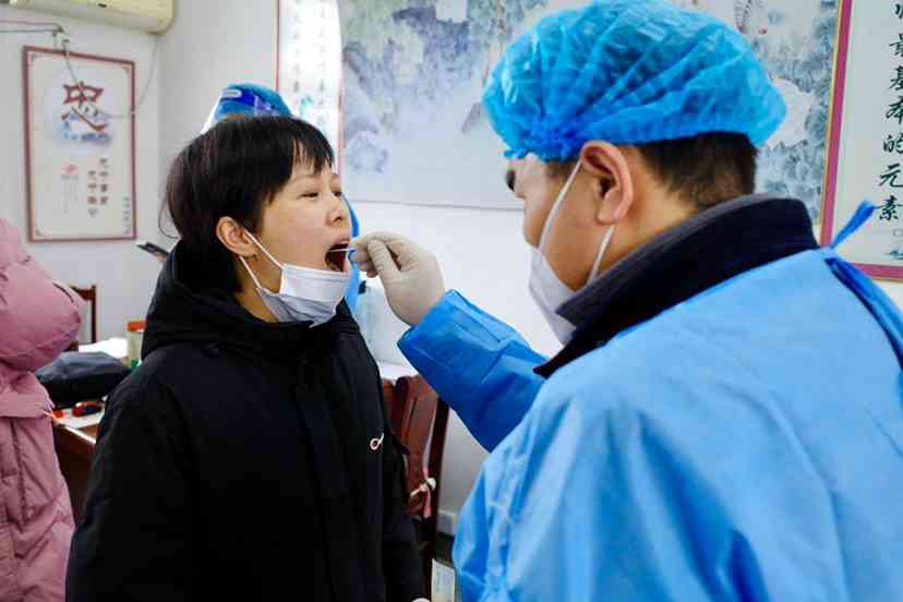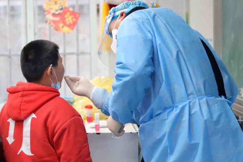 下午2:00,在各班主任的组织下,学生们按照名单依次排队检测,再核对完姓名后,通过咽拭子方式采集样本。医护人员身着防护服,戴着防护帽,严格按照要求进行检测。