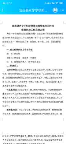 定远县 永宁学校党支部高度重视新型冠状病毒感染的肺炎防控工作,为贯彻上级防控工作的要求,第一时间启动公共卫生类突发事件应急预案,成立防控工作领导小组,余忠刚校长担任组长,切实把保障师生员工健康和生命安全作为首要任务。