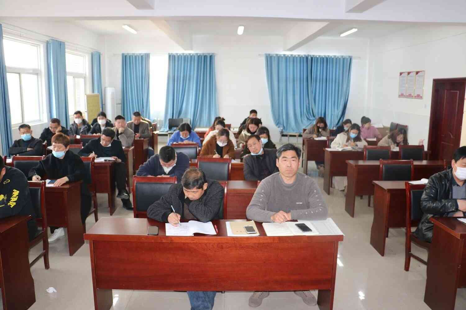 3月29日,定远县青洛初中召开疫情防控再推进会,会议由校党支部书记、校长单国选主持,全体教师参会。