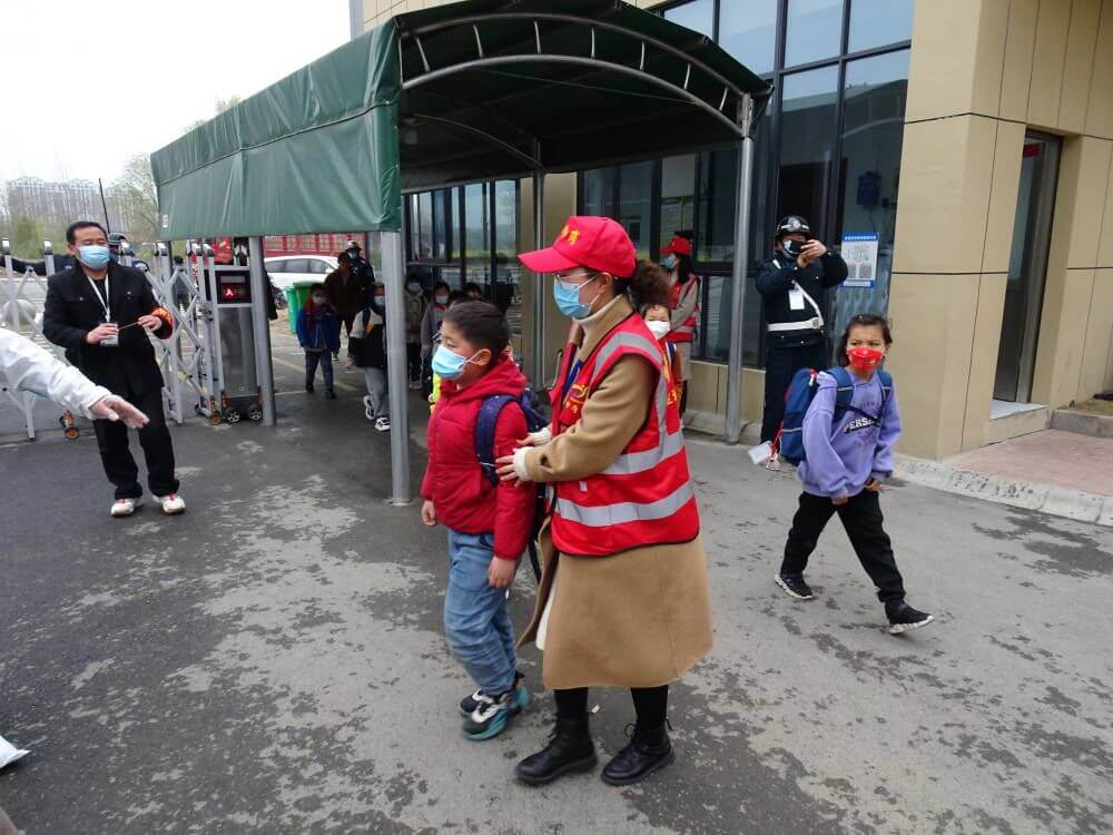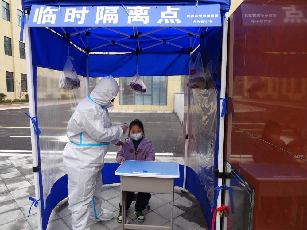 校安全办工作人员身穿防护服将该生带至隔离室进行二次测温,并询问孩子14天内的旅居史、接触史等,做好记录。确定学生体温偏高后,校安全办电话逐级上报至学校第一责任人处,并与定点医院取得联系,配合做好发热学生紧急转运等事宜,学校负责人第一时间将学校疫情状况上报至县教育体育局和疾控中心。