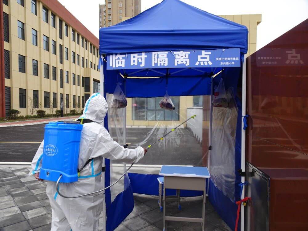 半小时后,校长接到发热学生初筛阳性后,立即通知几个协调组同时开启应急处置。后勤保障组安排保安封闭校园。消毒消杀组对“密接”学生所在班级教室彻底消杀,对校园重点区域、部位,开展规范消杀,做到全覆盖无死角。