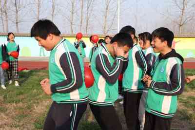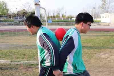 为贯彻落实“双减”政策,促进学生健康成长, 4月6日,定远县天河初中八年级同学分为两个小组在操场上演“背夹球跑”游戏,场面异常热闹。
