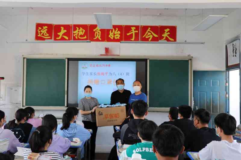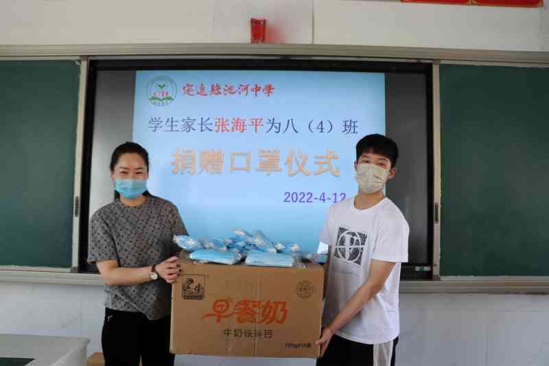 ~ 为助力学校抗击疫情,4月12日,定远县池河中学八(4)班王发辉母亲张海平女士向该校八(4)班全体师生捐赠1200多个一次性医用口罩,以此来助力学校疫情防控工作,其爱心举动受到师生们的点赞。池河中学分管副校长黄祎、八(4)班班主任黄如意代表学校防控疫情领导小组接受了捐赠,并对爱心家长的善行义举表示感谢。