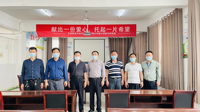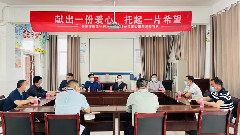 4月12日上午,定远县关工委及教体局领导携安徽赛迪生物科技有限公司张总一行来到年家岗小学进行抗疫物资捐赠。